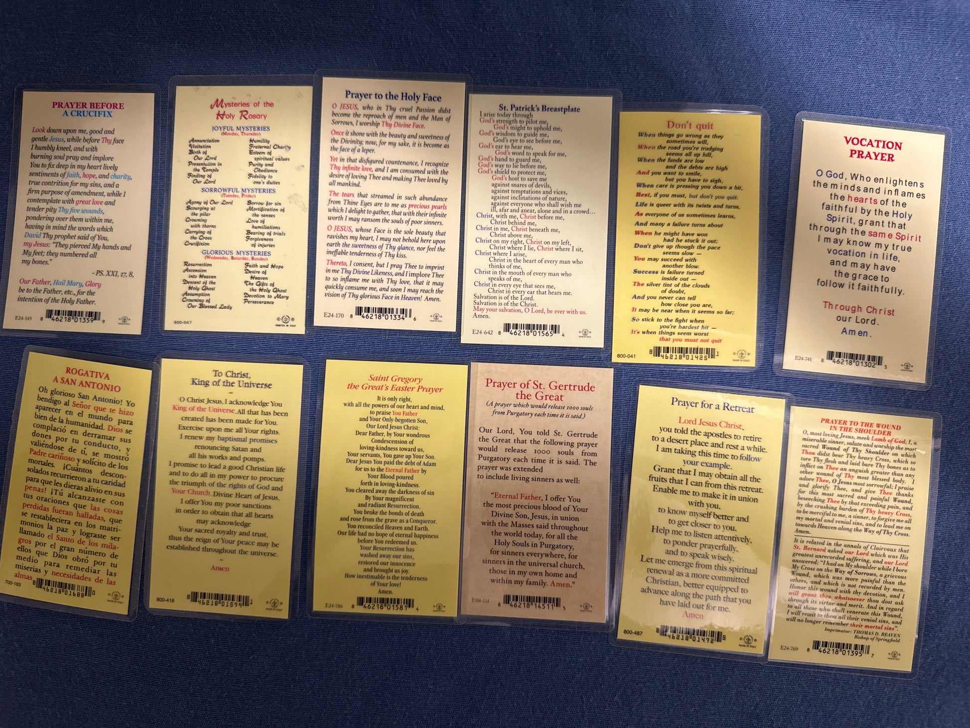 Laminated Holy Cards 26 - Made in Italy Lot of 12, Various Saints/Prayers, See Pictures